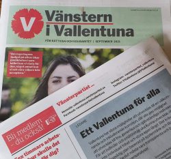 Den 15 september delades vår åttasidiga tidning Vänstern i Vallentuna ut i Vallentunas postlådor.